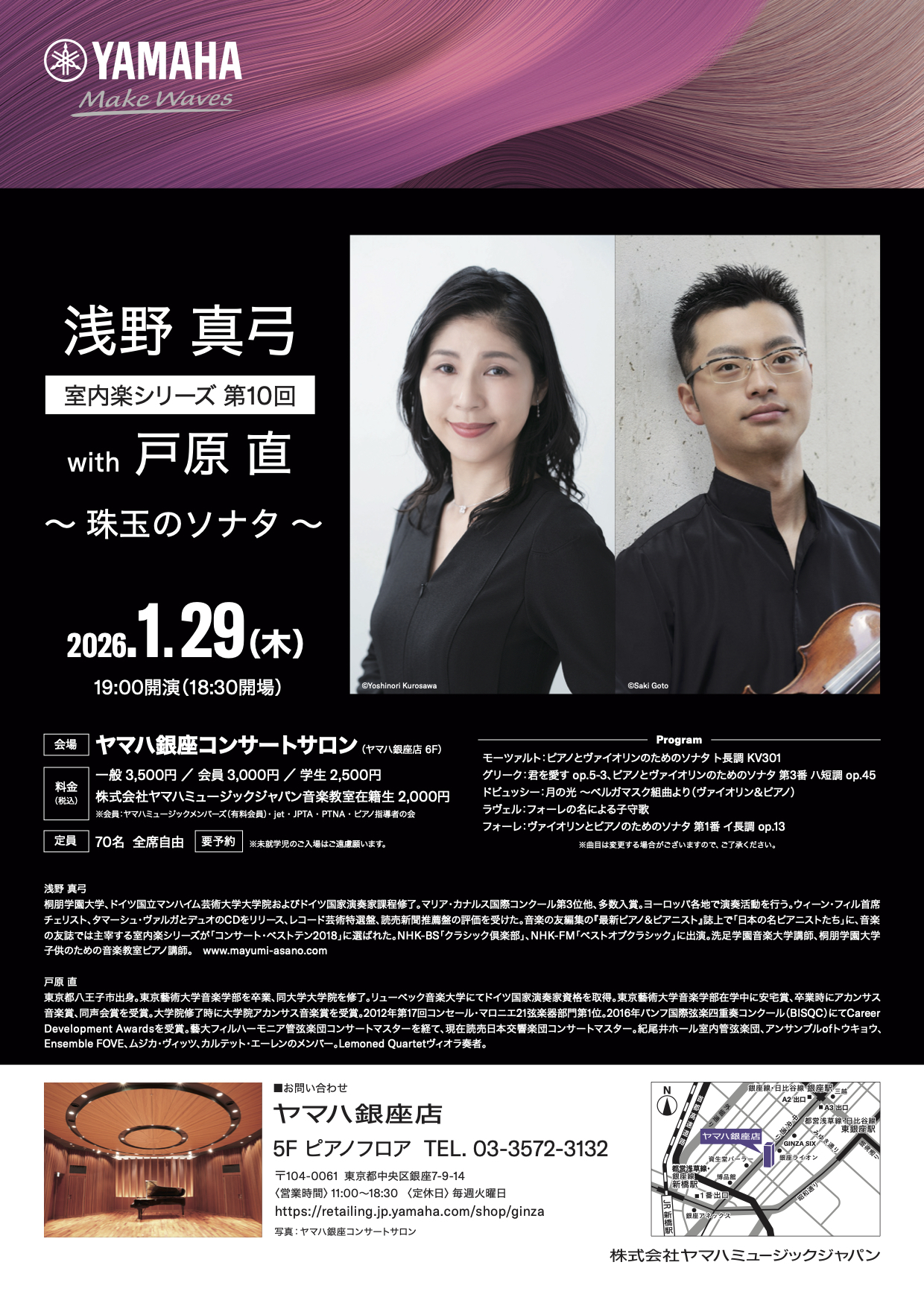 HOME > ギャラリー 活動内容詳細はこちら News 2016-20 2011-15 2004-10 ソロ、三重奏、五重奏 2021/3/18 ヴィオラ・リサイタル 2021/5/18 真嶋雄大の面白クラシック講座 2022/3/12 ソロ、三重奏、四重奏 2022/5/14 チェロ・リサイタル 2022/6/26 チェロ・リサイタル 2022/7/1 美女と野獣のトーク&コンサート 2022/11/27 日本モーツァルト愛好会例会 2023/5/20 室内楽 with 佐々木亮 2023/10/26 ヴィオラ・リサイタル 2023/11/3 タマーシュ・ヴァルガ チェロ・リサイタル 2024/5/19 タマーシュ・ヴァルガ チェロ・リサイタル 2024/5/21 タマーシュ・ヴァルガ チェロ・リサイタル 2024/5/22 チェロとソナタの名曲と珠玉の小品集 2024/6/2 デュオ・リサイタル 2024/10/2 ピアノ四重奏の夕べ 2024/11/29 室内楽 with 伊東裕 2025/9/7 室内楽 with 戸原直 2026/1/29